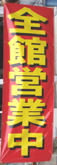 全館営業中のターポリン製3m*1m懸垂幕のご注文をいただきました御注文ありがとうございます